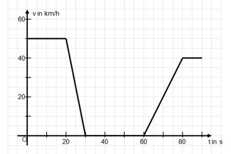 - Wanneer de snelheid afneemt (dus de lijn van het (v,t)-diagram loopt omlaag) dan is de beweging vertraagd.