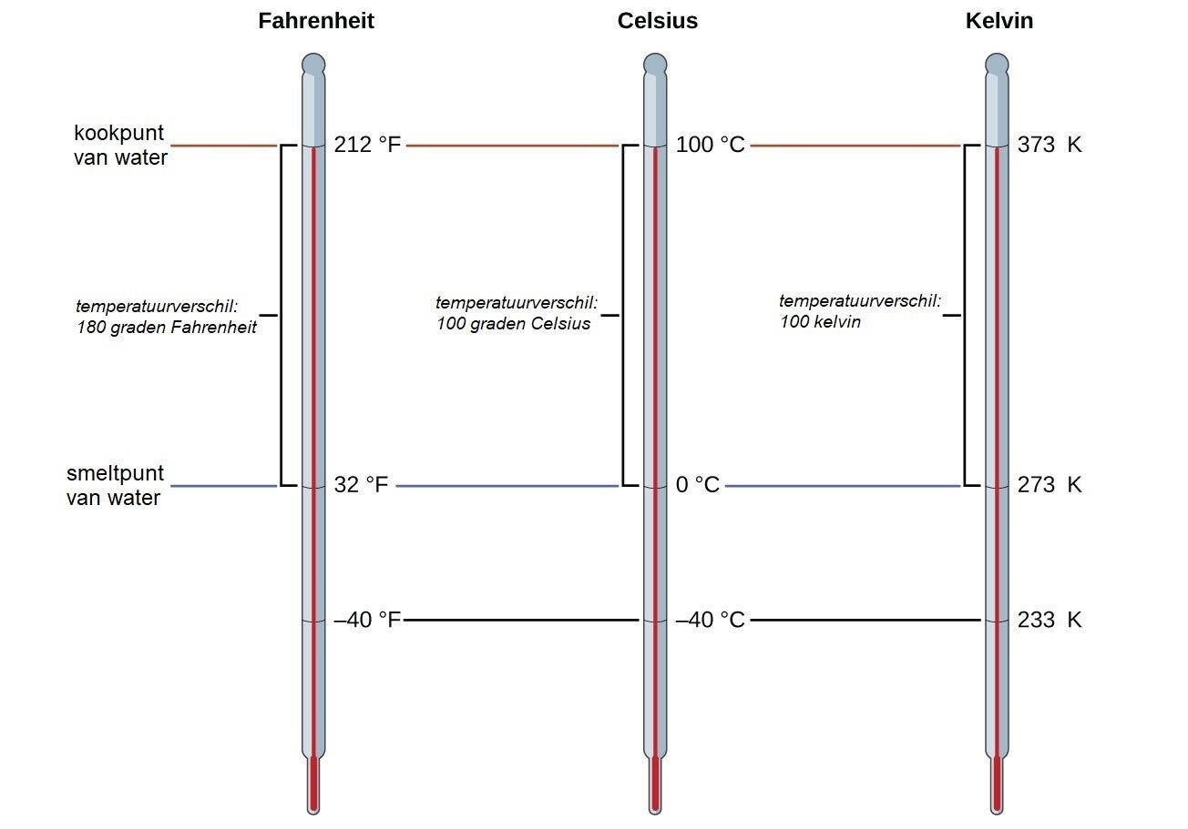 Temperatuurschalen: Lumen Learning (bewerkt) - https://courses.lumenlearning.com/suny-chemistryformajorsxmaster/chapter/mathematical-treatment-of-measurement-results-you-must-stay-in-inline-math-mode/ - licentie CC-BY 4.0